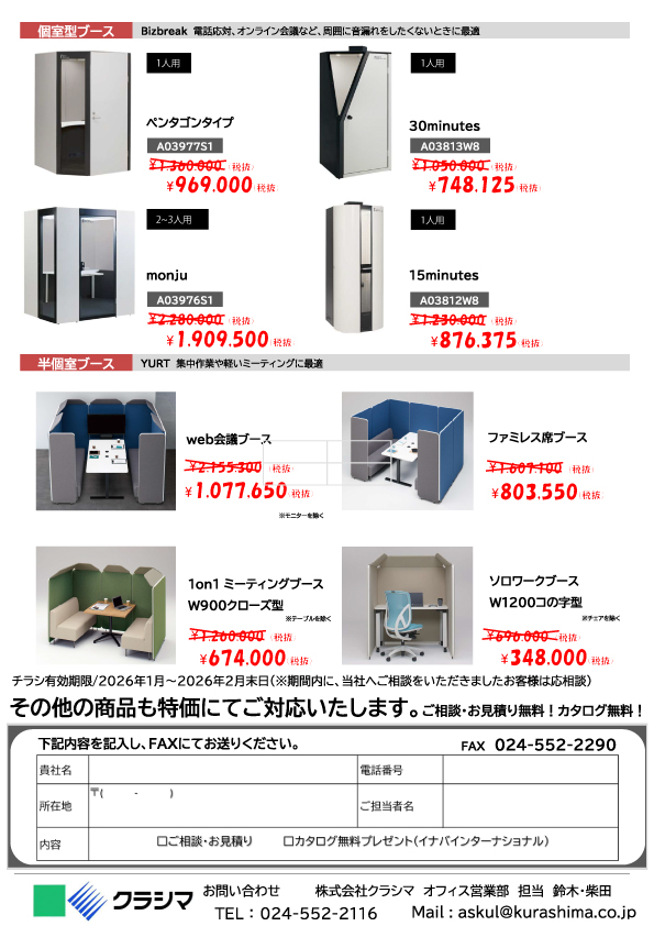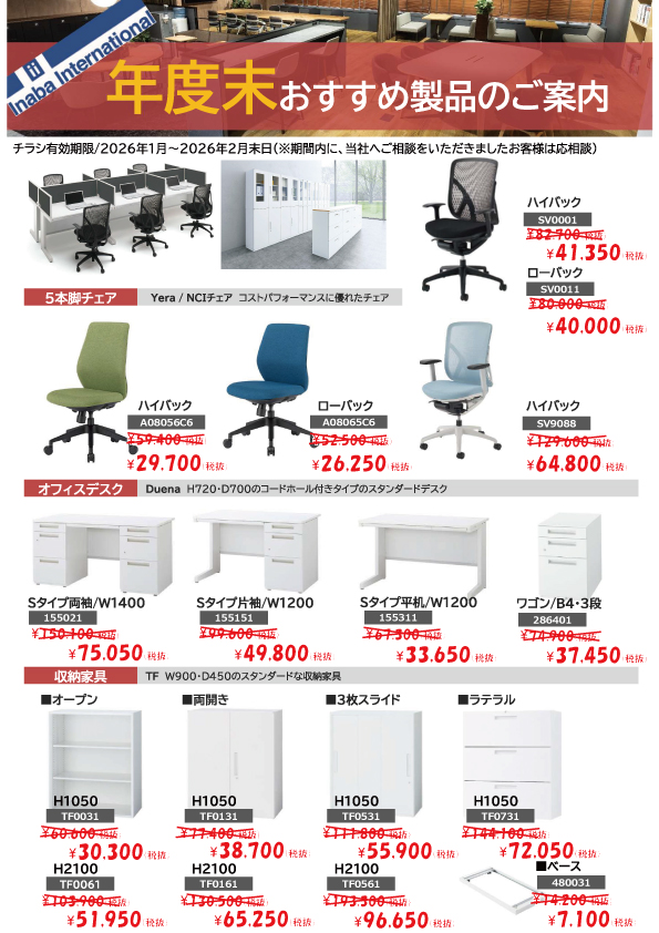 オフィス家具 年度末おすすめ製品のご案内