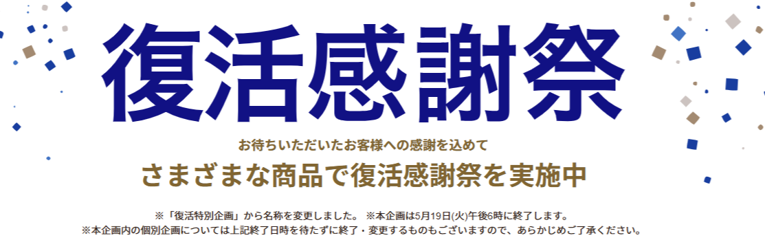 企画①人気メーカー商品 復活感謝祭セール → 4月30日18時終了予定